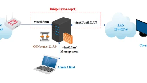 透明防火墙可以过滤流量,无需创建单独的子网。该防火墙被称为过滤桥,因为它充当两个接口之间的桥梁,并在此基础上实现过滤规则。 注意:透明过滤桥和流量整形之间不兼容。使用过滤桥时,请勿激活流量整形器。 为方便配置,本教程使用 3 个网络接口: WAN LAN LAN管理接口 我们将使用 LAN 管理接口访问OPNsense,并对其进行配置,WAN 和 LAN 接口将被配置为桥接接口的成员。 在 OPNsense 防火墙上配置透明网桥有以下几个步骤: 禁用出站 NAT 规则生成 更改系统可调参数 创建网桥 接口分配 取消…
